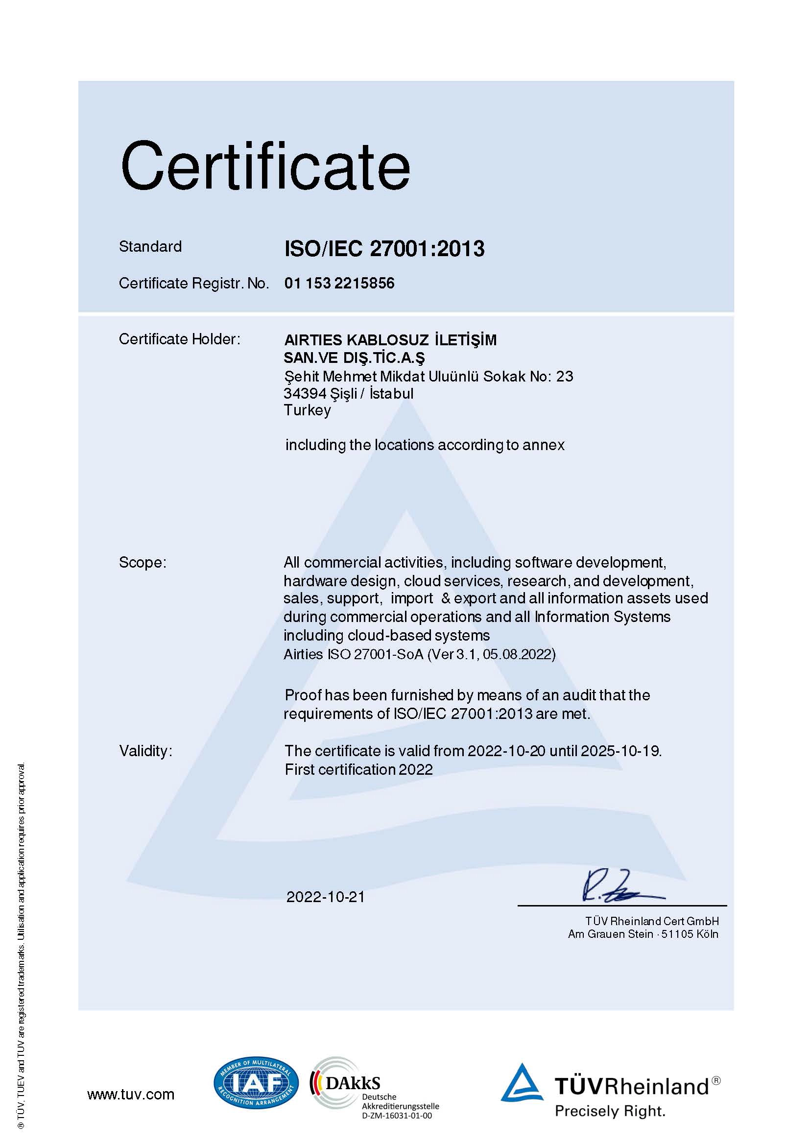 Airties is committed to ensuring the confidentiality, integrity, and availability of corporate and personal information across all systems and stakeholders as part of its mission to lead in smart in-home Wi-Fi solutions.
